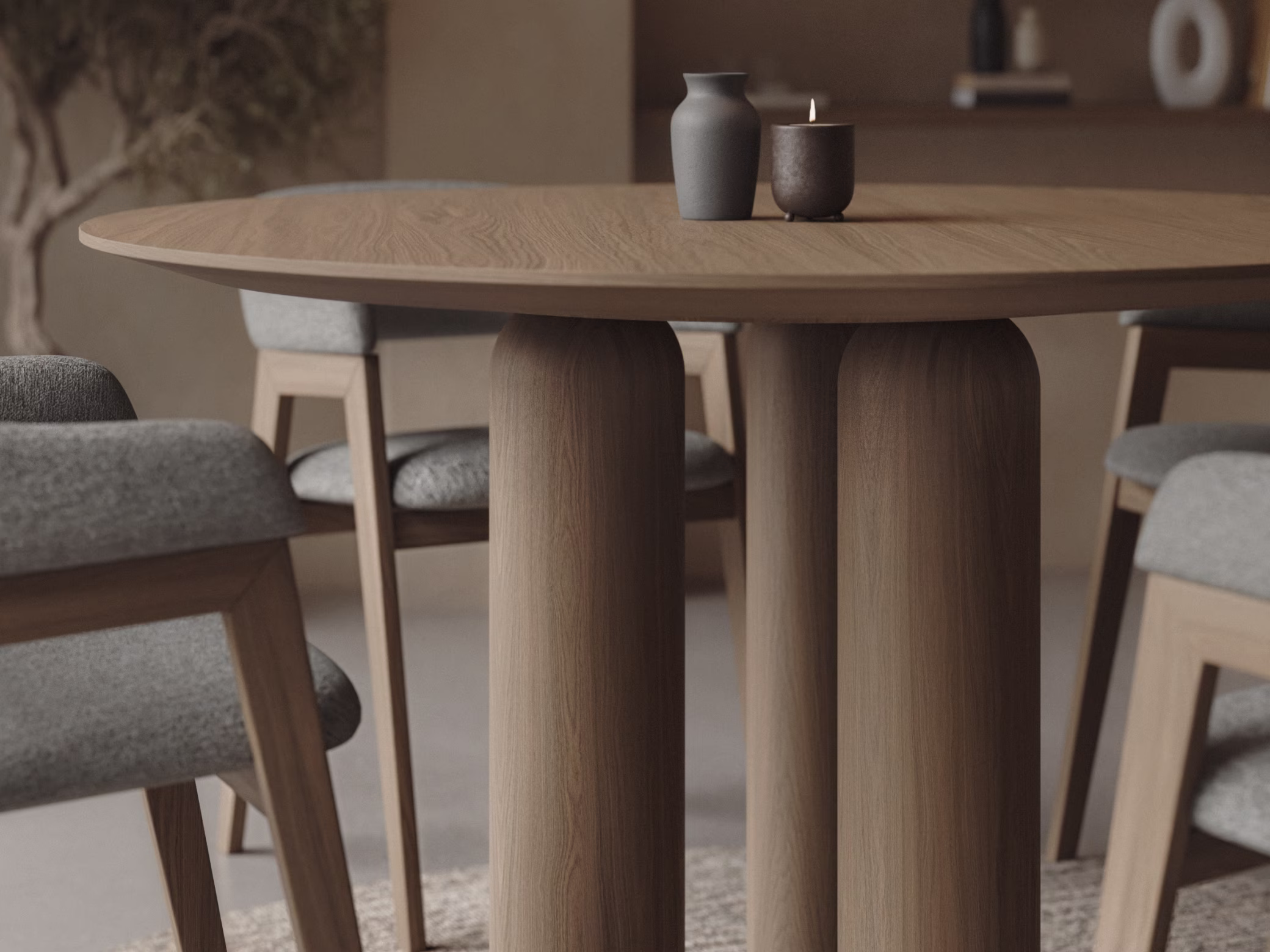 Tabletop material: Natural oak veneer (1.5 mm) on a wood-based board core, ensuring dimensional stability.